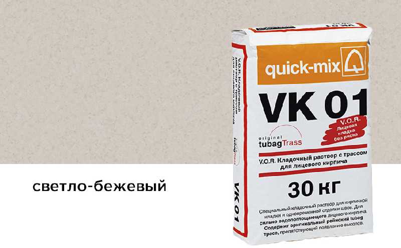• раствор VK 01 - специальная сухая смесь для кладки сильно водопоглощающего лицевого кирпича (или камня) с водопоглощением 8-10%.