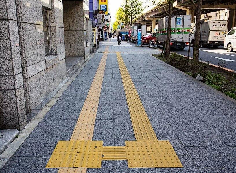 Тактильная плитка с продольными рифами 400x400x50 желтая